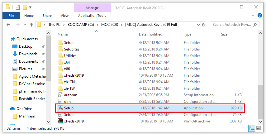 Bước 1: Trước hết, bạn phải tải file cài đặt mình để link bên trên đã, sau đó bạn giải nén file “Autodesk Revit 2019×64” ra. Tiếp theo, bạn click vào Setup.exe để bắt đầu tiến trình cài đặt.