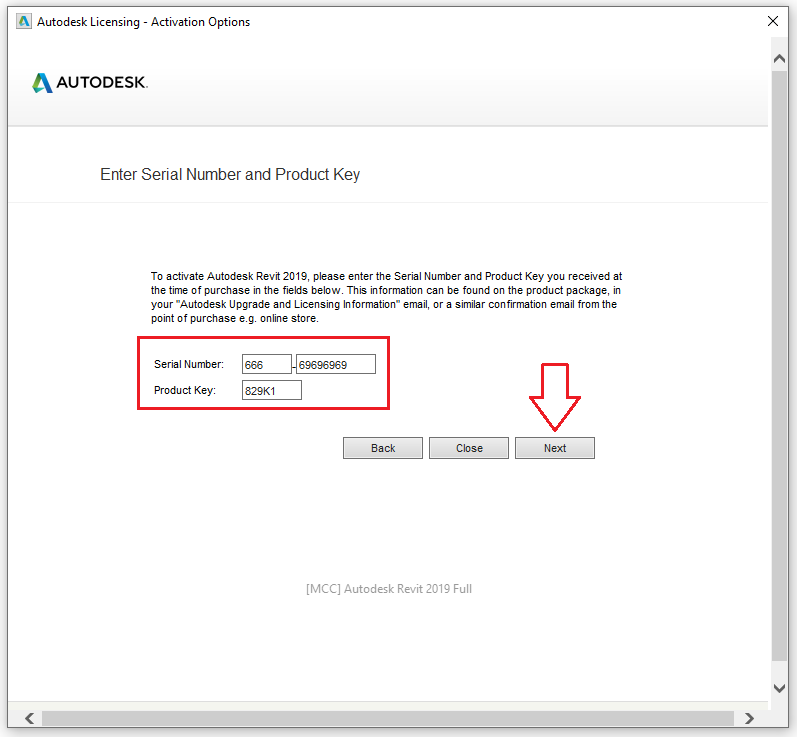 Bước 6: Nhập 666 – 69696969 vào Serial Number và 829K1 vào Product Key như hình dưới. Sau đó cọn Next