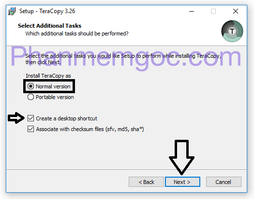 - Bước 3: Chọn Normal version và chọn Next như hình dưới