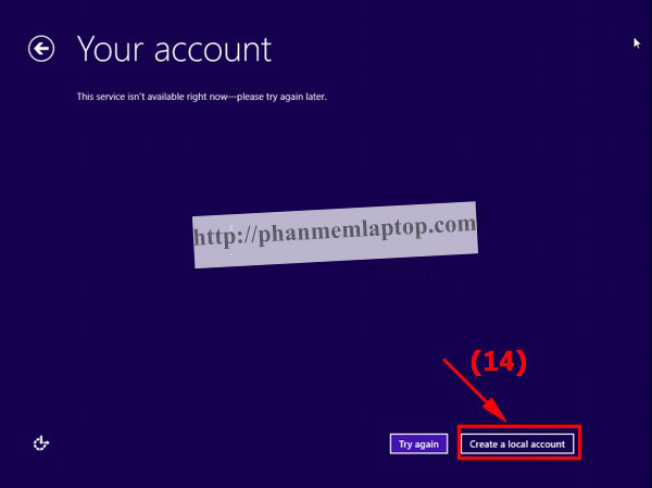 Bước 11: Các bạn chọn Create a local account: Tạo tài khoản sử dụng cho Windows