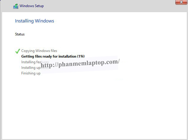 Quá trình cài đặt sẽ diễn ra một ít phút. Sau đó, windows sẽ tự khởi động lại.