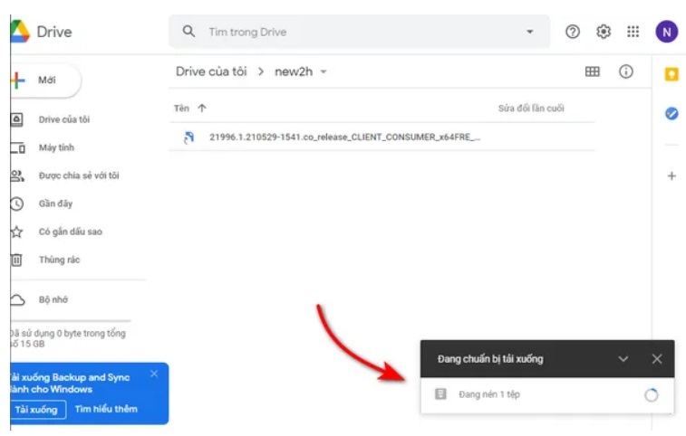 - Đợi cho thư mục được nén và quá trình tải sẽ bắt đầu.